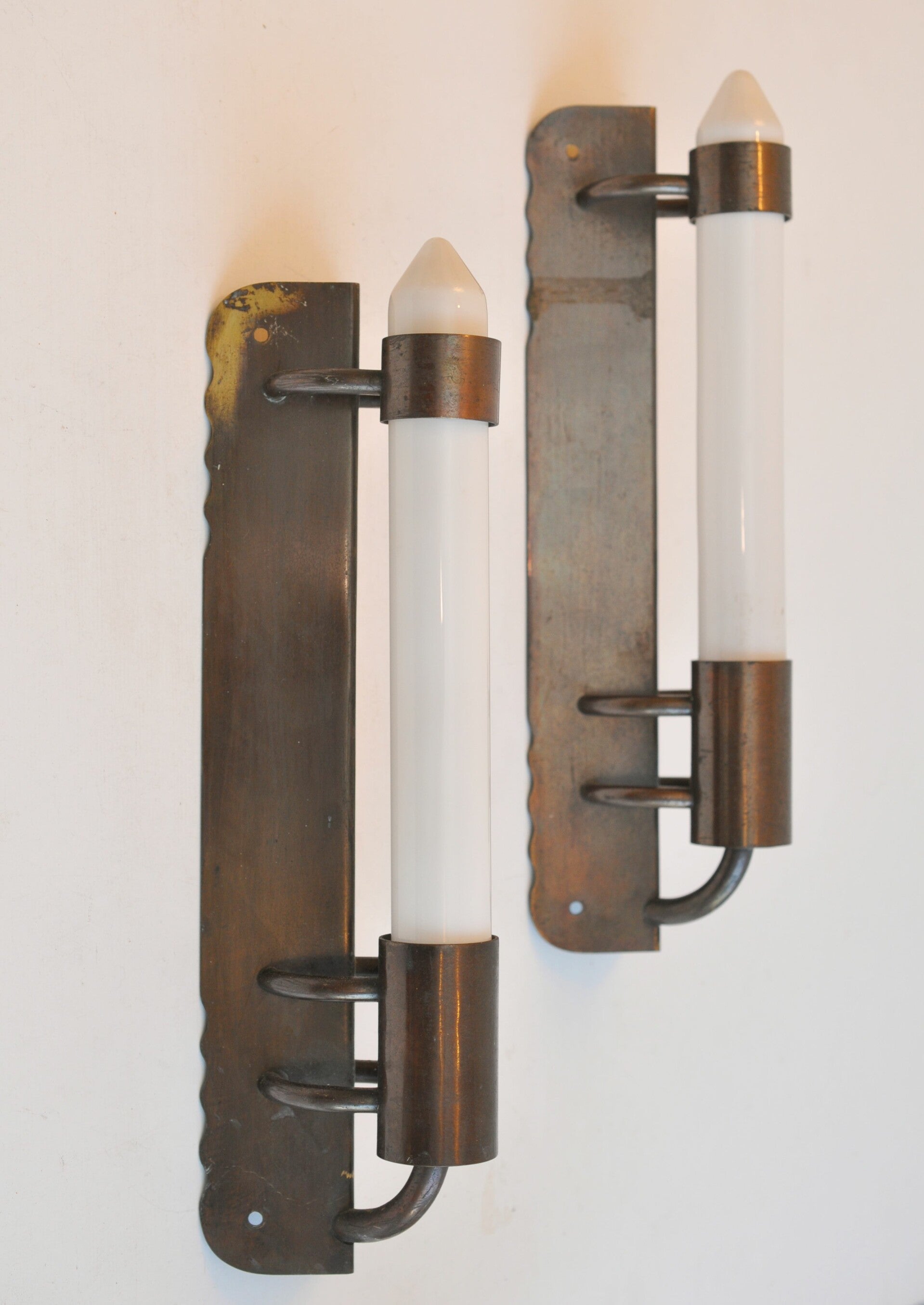 pair Nieuwe Kunst corner lamps Berlage era, Colorenta bulbs
