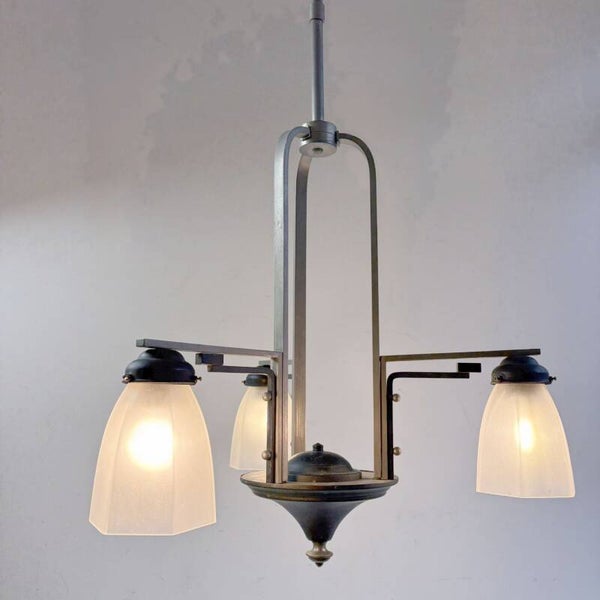 art deco chandelier nickle