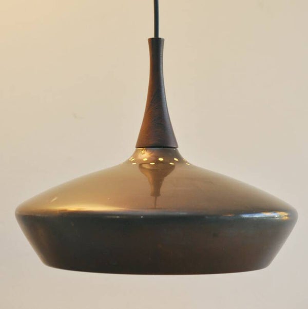 Danish copper and teak hanging lamp
