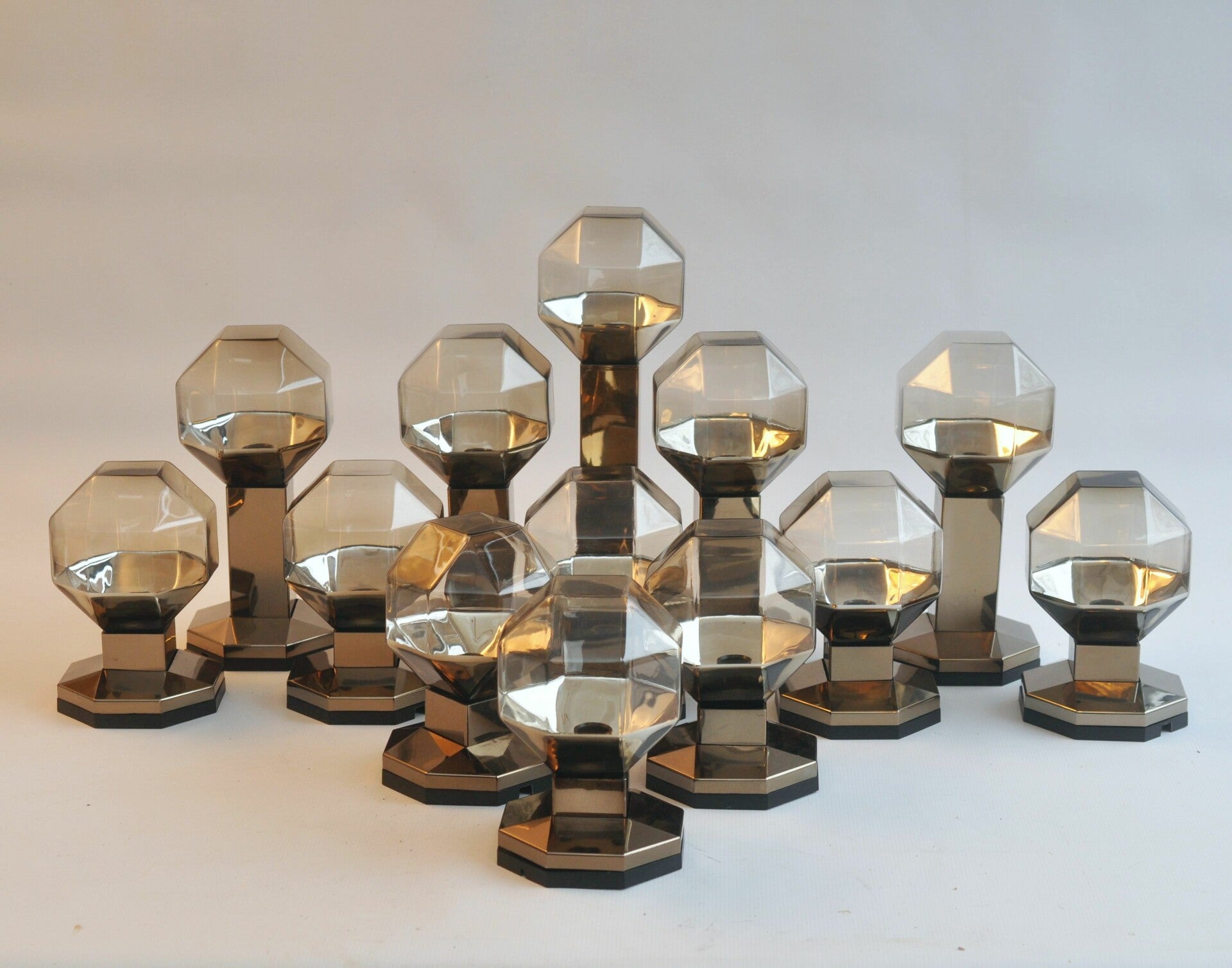 - glass partly spray painted gold and plastic spray painted gold